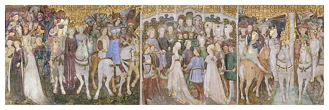 Al ciclo degli affreschi che narrano la leggenda, fa da introduzione un dipinto sul frontale dell’arco d’ingresso alla cappella, che, insieme a quelli degli spicchi delle volte, rappresentano santi ed evangelisti in trono, di autore ignoto. La singolarità di questi affreschi è quella di aver rappresentato scene della storia longobarda negli sfarzosi costumi dell’epoca dei Visconti e di aver inserito in un luogo sacro scene di vita profana. Il probabile committente fu Filippo Maria Visconti.